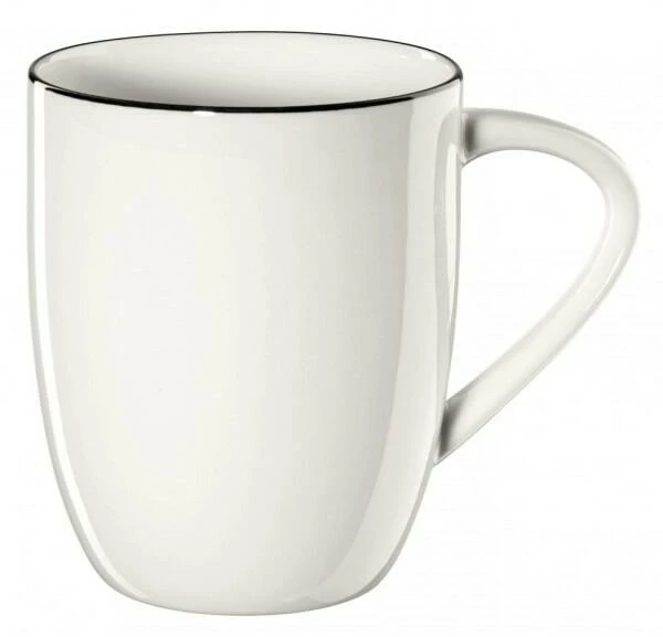 ASA Henkelbecher à Table Ligne Noire. Große Kaffeetasse 350 ml und schwarzer Konturlinie. Perfekt für Milchkaffee, Cappucino, heiße Schokolade oder Tee.