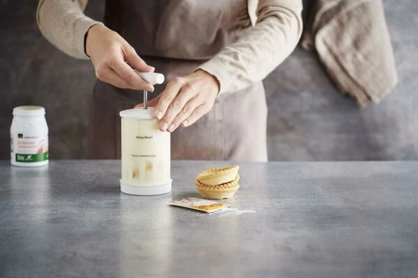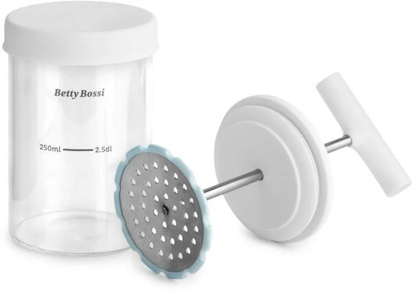 Betty Bossi Sahnespender Rahmblitz. Mit diesem Küchenhelfer aus Glas wird Sahne im Nu hergestellt. Mit rutschfestem Boden, der zugleich auch Deckel ist. Für bis zu 250 ml Sahne geeignet.