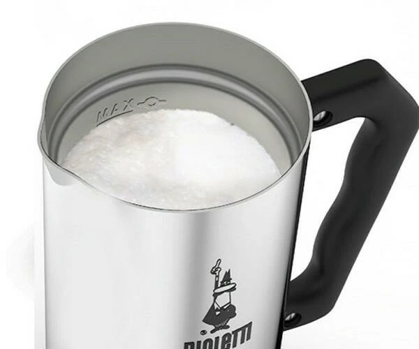 Bialetti elektrischer Milchaufschäumer aus Edelstahl. Kein Vorwärmen der Milch mehr nötig. Für den vielseitigen Genuss von Cappuccino, Latte Macchiato und andere Köstlichkeiten mit Milchschaum oder Milch!
