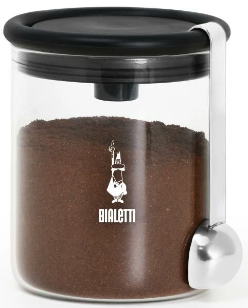 Bialetti Glas mit Dosierer. Glas ideal für die Aufbewahrung von gemahlenem Kaffee. Ausgestattet mit einem praktischen Dosierlöffel.