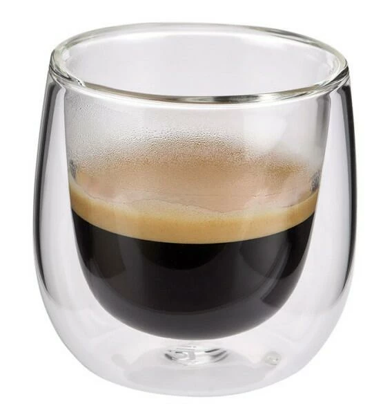 cilio Espresso-Glas VERONA, 2er Set. Das doppelwandige Glas ist ideal für heiße oder kalte Getränke. Es isoliert die Hitze des Getränkes, so dass Sie sich nicht die Finger verbrennen. Für vielfältige Kaffeevariationen.