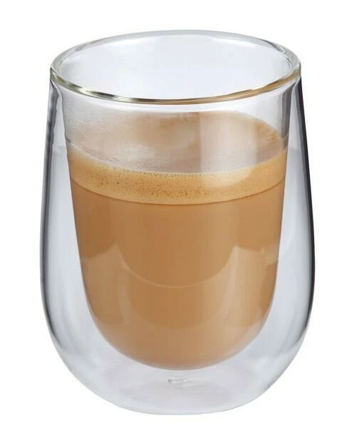 cilio Milchkaffee-Glas VERONA, 2er Set. Das doppelwandige Glas ist ideal für heiße oder kalte Getränke. Es isoliert die Hitze des Getränkes, so dass Sie sich nicht die Finger verbrennen. Für vielfältige Kaffeevariationen.