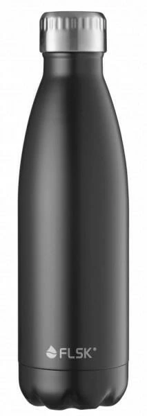 FLSK Isolierflasche in schwarz. Die markant-elegante Trinkflasche in schwarz hält Heißgetränke 18 Stunden warm und Kaltgetränke 24 Stunden eiskalt.
