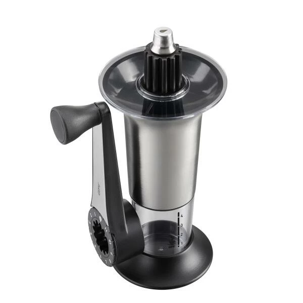 Mit der Kaffeemühle LORENZO von GEFU gelingt Ihnen frisch gemahlener Kaffee im Handumdrehen. Die Skalierung lässt den perfekten Mahlgrad ideal in 11 Stufen auf den persönlichen Geschmack einstellen – von fein (für Espresso), mittelfein (für Filterkaffee) bis grob (für French Press). Durch das extra große und geschmacksneutrale Keramik-Kegel-Mahlwerk sind deutlich weniger Drehungen als bei herkömmlichen Mühlen notwendig. Außerdem lässt es sich einfach nachjustieren, sodass Sie immer das exakt gleiche Ergebnis auf der entsprechenden Stufe erhalten. Dank der abnehmbaren Kurbel, die senkrecht auf die seitliche Vorrichtung am Kaffeebehälter gesteckt werden kann, benötigt die mit einem Aromadeckel ausgestattete Mühle nur wenig Platz.