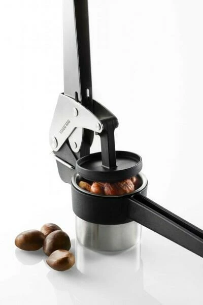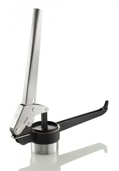 Ihre optimierte Hebelmechanik vereinfacht das Pressen von Kartoffeln, Saft und Spätzle. Der Stempel bleibt immer waagerecht im Behälter, wodurch eine optimale Kraftausbeute sichergestellt wird und nichts heraus quillt. Zusammen mit den extra langen Griffen aus Edelstahl und Nylon ist ein bequemes Arbeiten möglich. Die zwei enthaltenden Lochscheiben lassen sich problemlos in den Behälter legen. Zudem ist eine einfache Reinigung in der Spülmaschine möglich. Auf Töpfen und Schüsseln hat die Presse einen sicheren Stand und lässt sich durch die Aufhängeöse nach Gebrauch einfach verstauen.