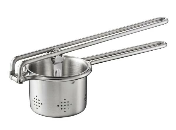 Saftpresse JUICY. Formschöne Edelstahl-Kartoffel- und Saftpresse in hochwertiger Verarbeitung und mit robuster Mechanik. Für Kartoffeln, Gemüse und Obst ideal geeignet.