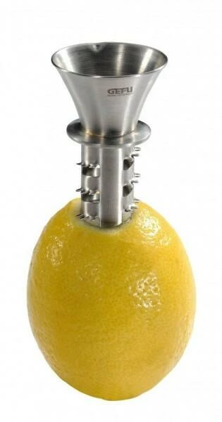 Dank des Zitronensaft-Ausgießers von GEFU aus Edelstahl wird der Saft von Zitrusfrüchten perfekt portioniert. Einfach den Ausgießer eindrehen, die Frucht drücken und nach Belieben ausgießen. Auch für Limetten und Orangen geeignet.