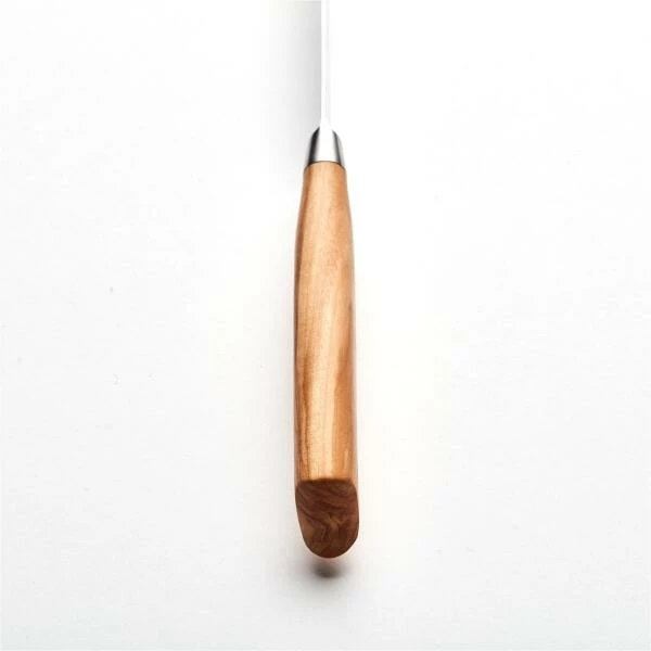 Die 9 cm lange Klinge aus rostfreiem Stahl geht nahtlos in den formschönen Griff aus Olivenholz über. Die natürliche Maserung des Olivenholzes macht jedes Messer zu einem Unikat. Sie werden das Messer nicht mehr aus der Hand legen wollen!