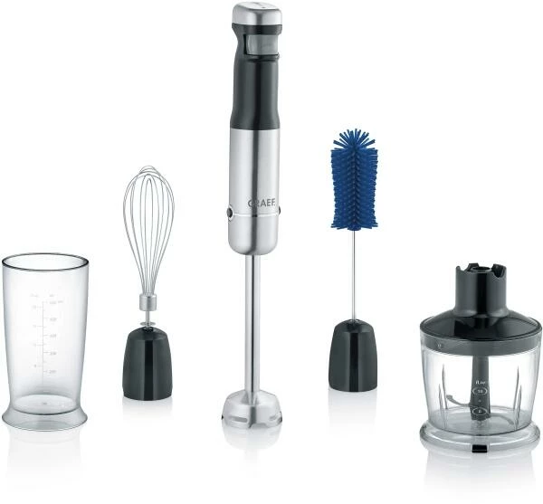 Ob Smoothie, Suppe oder Soße, der Akku-Stabmixer ist flexibel in der Küche einsetzbar und das unabhängig von einer Steckdose. Der handliche Allesskönner von GRAEF verfügt über einen leistungsstarken 200-Watt-Motor und ist dank des umfangreichen Zubehörs universell einsetzbar: Ob zum Pürieren von Suppen und Saucen, zur Herstellung von fruchtigen Säften oder Smoothies, Milkshakes und zum Glattrühren von Teig oder Schlagen von Sahne für schmackhafte Desserts. Seine Vielseitigkeit verdankt der Stabmixer den Zubehörteilen wie dem Schneebesen oder dem mitgelieferten Zerkleinerer. Bei Nichtgebrauch kann alles in der praktischen Aufbewahrungsbox kompakt verstaut werden.