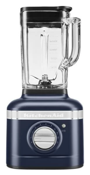 Standmixer Artisan K400 in tintenblau. Hochwertiger Standmixer mit neuartigem 3-teiligem Mix-System, bestehend aus einem 1,5 PS starkem Motor, einer einzigartig asymmetrischen Klinge und einem 1,4 L Glas-Behälter mit Riffelungen und Skala.