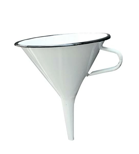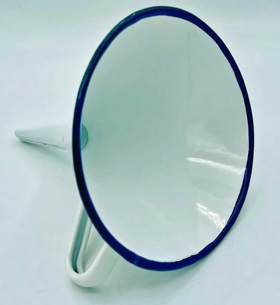 Krüger Trichter HUSUM. 13 cm langer Trichter aus emailliertem Stahl. Im traditionellen Look mit dunkelblauem Rand. Ideal für das Ein- und Umfüllen von Flüssigkeiten beim Kochen oder Backen. Der Trichter ist dank Emaillie leicht zu reinigen.