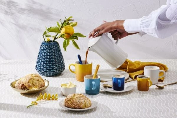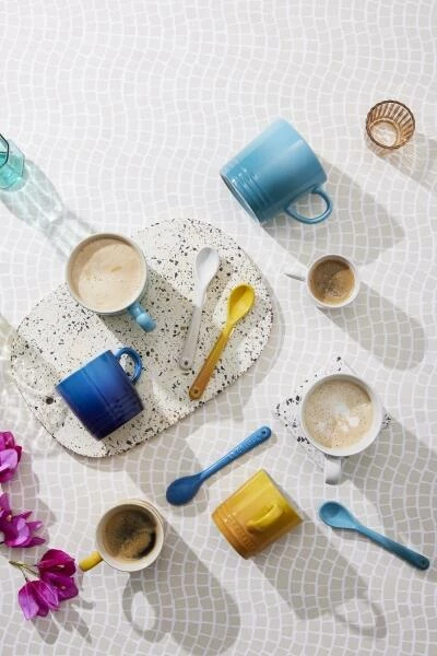 Le Creuset sind auch die Becher besonders leicht zu reinigen und spülmaschinenfest. Steinzeug ist, wie Porzellan, feinkeramisch und gehört zu der qualitativ hochwertigen Kategorie dichter Tonwaren. Im Gegensatz zum namensähnlichen Steingut hat Steinzeug eine deutlich bessere Beständigkeit, Festigkeit und Dichtigkeit des Materials. Die hohen Brenntemperaturen von bis zu 1300 Grad Celsius und die geringe Porosität gewährleisten eine dauerhafte Beanspruchung ohne Glasurrisse.