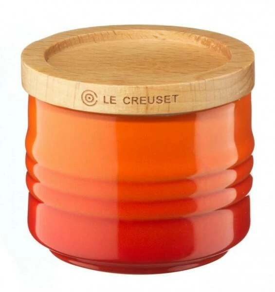 Le Creuset Zuckerdose in ofenrot. Ideal zum Aufbewahren von Zucker, Kaffeepulver oder Mehl.