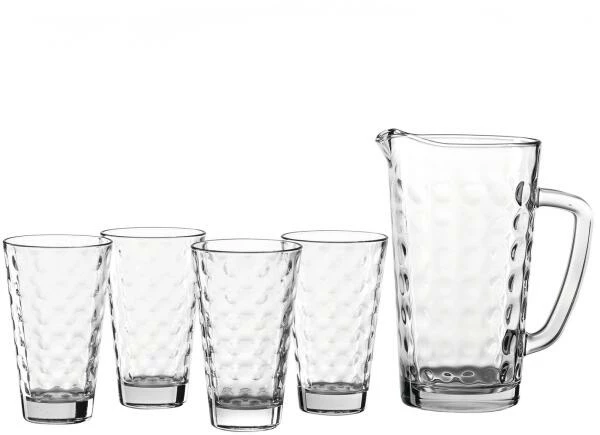 Mit dem liebevoll designten Getränkeset aus der Serie OPTIC genießen Sie Ihr Getränk in vollen Zügen. Dieses konisch geformte Getränkeset ist ein absolutes Must-Have. Dieses Getränkeset aus Glas wird zum ganz besonderen Hingucker. Gestalten Sie sich den Alltag ganz nach Ihren Wünschen und belohnen Sie sich mit dem, was Ihnen gefällt – mit LEONARDO. Das praktische OPTIC Getränkeset ist spülmaschinengeeignet und eignet sich damit hervorragend für den täglichen Gebrauch. Der konische Krug glänzt besonders in Kombination mit den vier Longdrinkbechern – moderne Akzente setzen leicht gemacht! Für alle, die Wert auf Qualität legen – bestellen Sie am besten direkt und verschönern Sie sich Ihr Zuhause mit diesem hochwertigen Getränkeset. Besonders überzeugend als Geschenk.