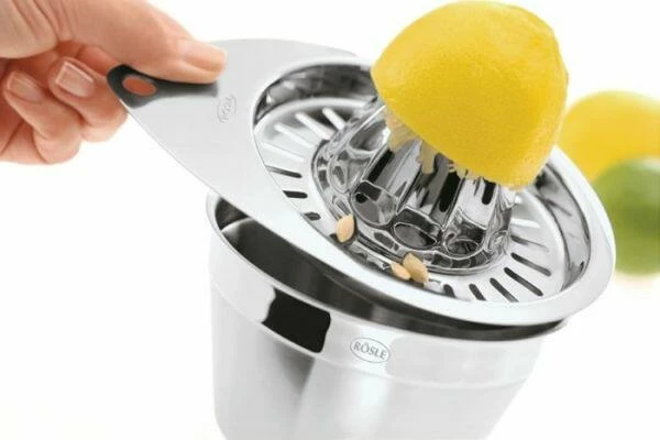 Rösle. Der Presskegel ist optimal auf das Auspressen von Zitronen und Limetten ausgerichtet. Durch die tiefen Kerbungen des Kopfes kann der Saft ohne großen Kraftaufwand ausgepresst werden.