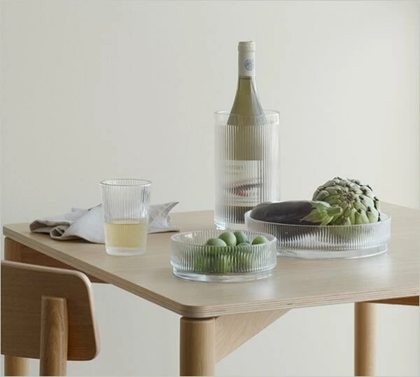 Flaschenkühler aus Glas vorher in das Tiefkühlfach stellen oder mit Eiswürfeln füllen und Weinflasche rein, fertig! Und falls sie den Weinkühler Pilastro grade nicht in Gebrauch haben, macht er sich auch wunderbar als Vase.