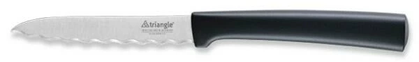 Mit dem triangle Tomatenmesser mit gewellter Klinge gelingen gleichmäßige, dünne Scheiben ohne Druckstellen und auslaufenden Saft. Denn die zähen Häute von Tomaten, Chili und Paprika benötigen eine sehr scharfe, gewellte Klinge, um ohne Druck sauber durchtrennt zu werden. Durch den speziellen weichen Wellenschliff lässt sich das triangle Tomatenmesser mit einem herkömmlichen Wetzstahl nachschärfen. Hergestellt in Solingen, rostfrei und spülmaschinengeeignet.