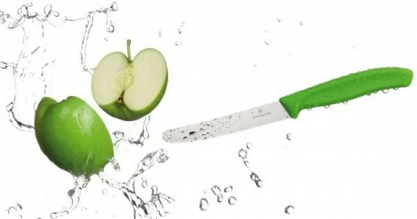 Victorinox Tomaten- und Wurstmesser mit Wellenschliff, 11 cm, grün. Swiss made.