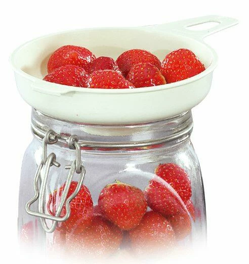 Dieser Küchenhelfer ist optimal zum Einmachen von Früchten, da der Durchlass groß genug für das Obst ist. So lassen sich die Früchte leicht in das jeweilige Gefäß füllen – ganz ohne zu kleckern.